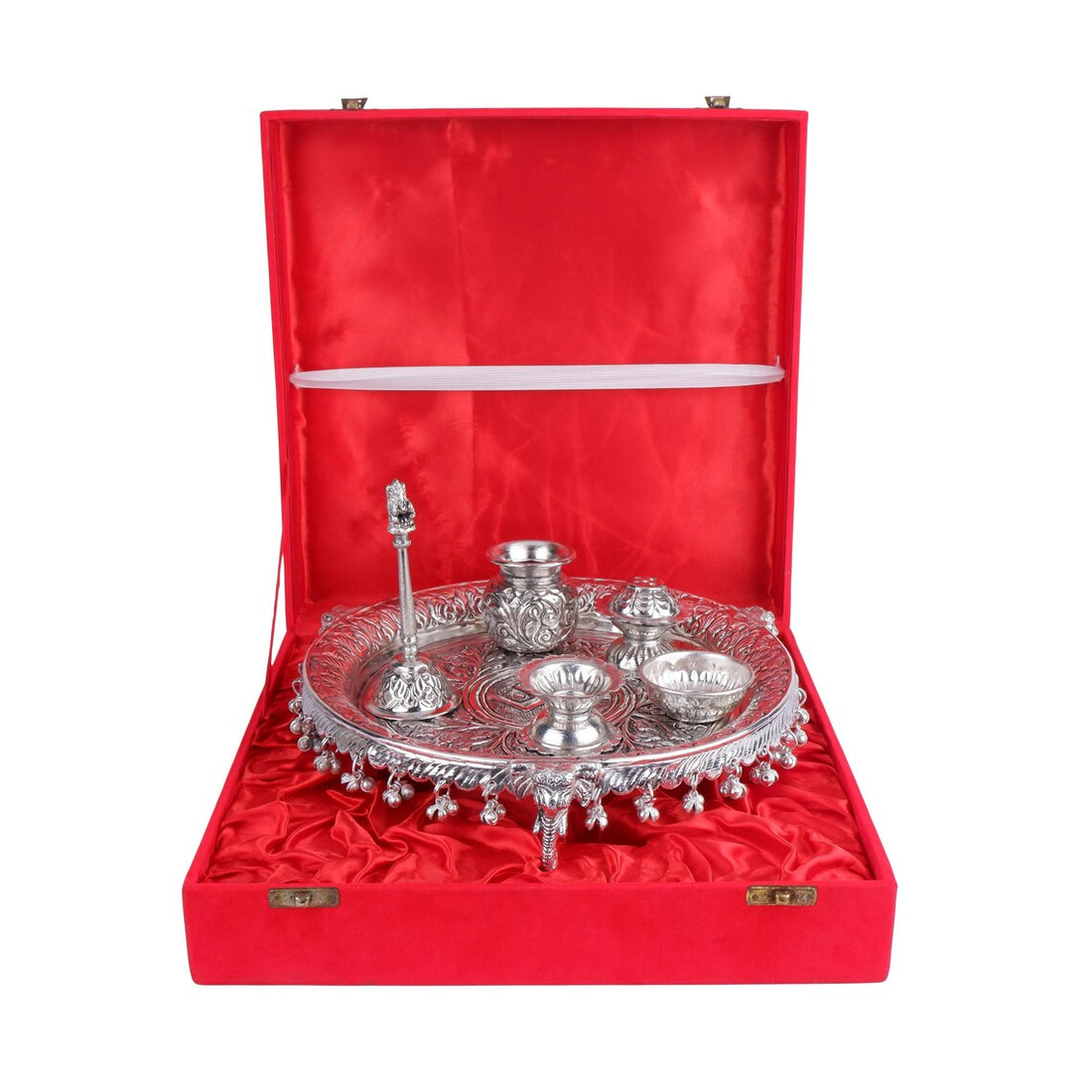 10" German Silver Pooja Thali Set with Ghungroo 6 PC Puja Thali