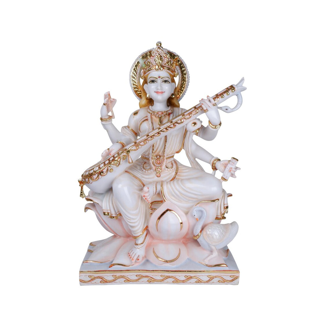 23 Inch Maa Saraswati Statue | Pure Makrana Cultured Marble Handcrafted Hindu Goddess Idol for...