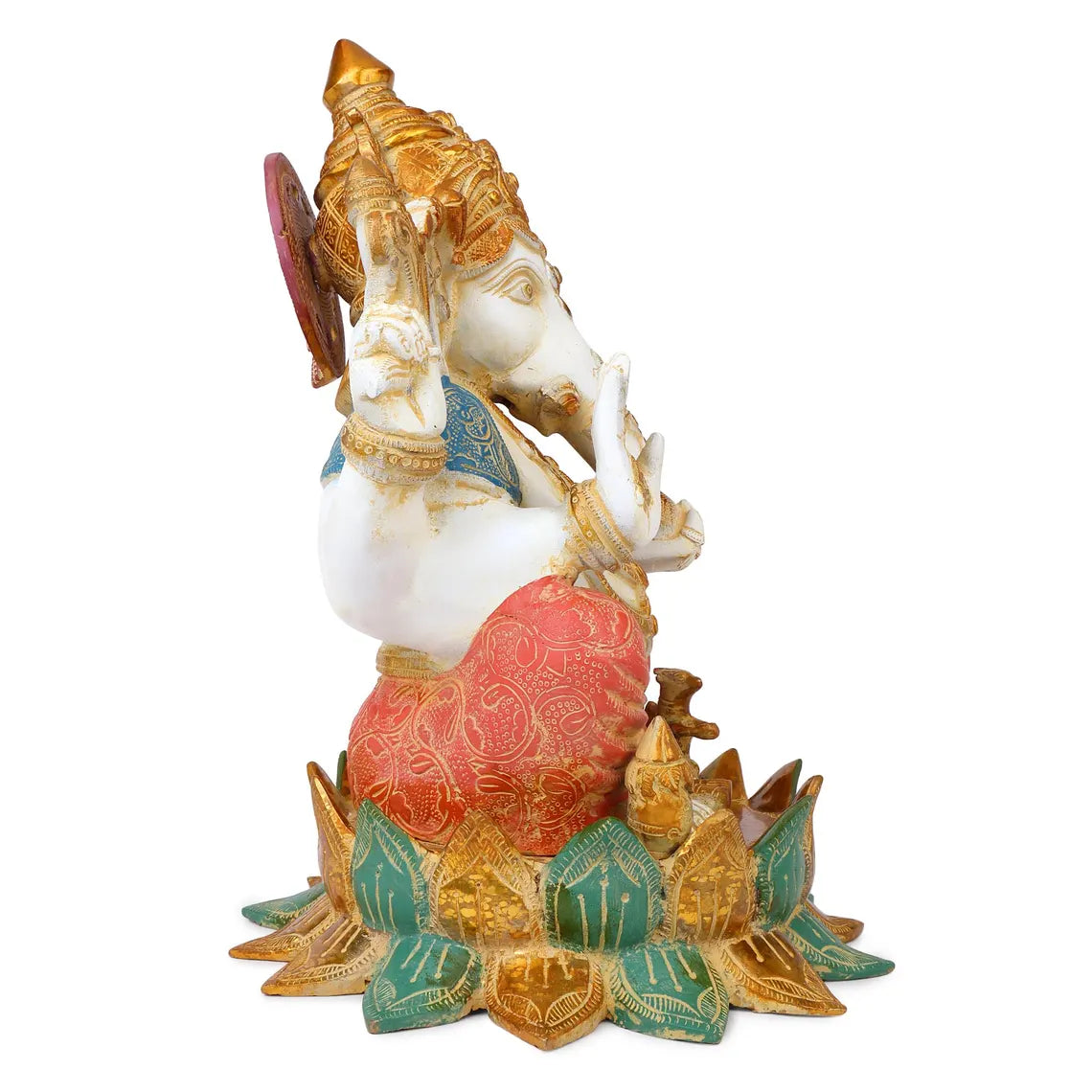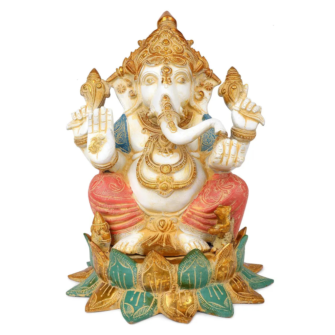 Welcome the divine presence of Lord Ganesha into your sacred space with this exquisitely handcrafted 15-inch Ganpati idol, made from durable brass and finished with traditional chemical painting. Known as the remover of obstacles and the god of success, Lord Ganesha’s calming presence brings peace, prosperity, and protection to your home, temple, or office.